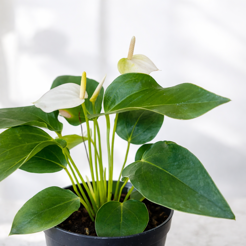 Tags: air purifying plant, compact indoor plant, desk plant, flamingo flower white, gifting plant, indoor flowering plant, live anthurium plant, low maintenance houseplant, mini indoor plant, miniature white anthurium, ornamental indoor plant, small flowering plant, tabletop plant, white anthurium plant, white houseplant
